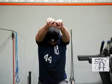 The plyo wall is used for us to do our weighted/plyo ball routines and workouts with.