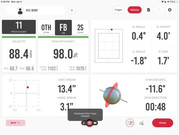 We use Rapsodo technology to show us the advanced metrics of our players pitches, having a full understanding of the spin and movement the pitches have.
